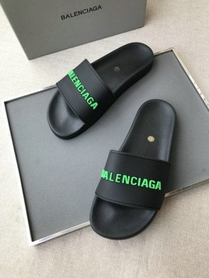 Balenciaga Logo Pool Slides Black Fluo Green