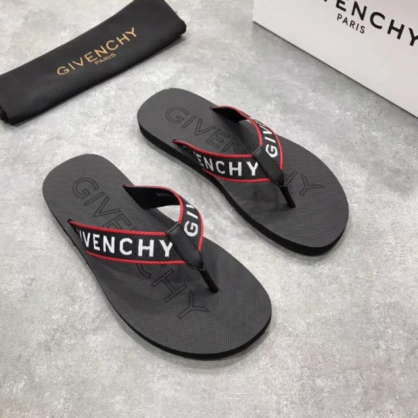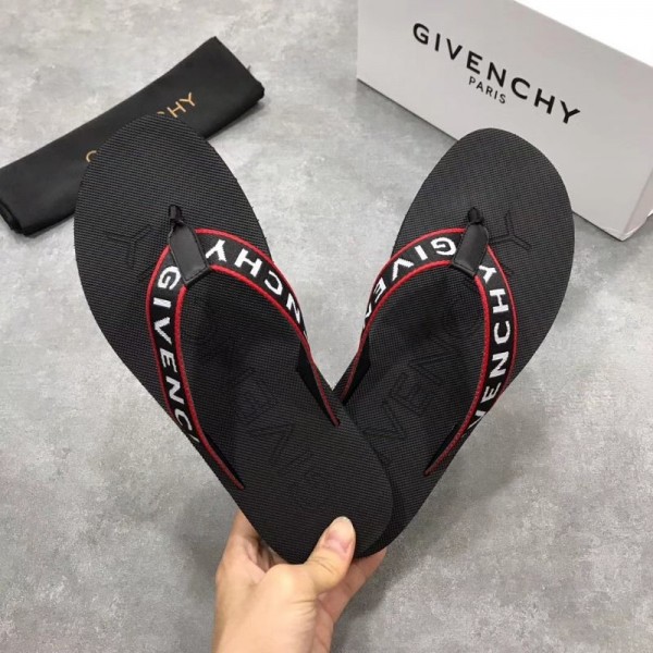 Givenchy mens flip flops black with red border and prominent lettering.