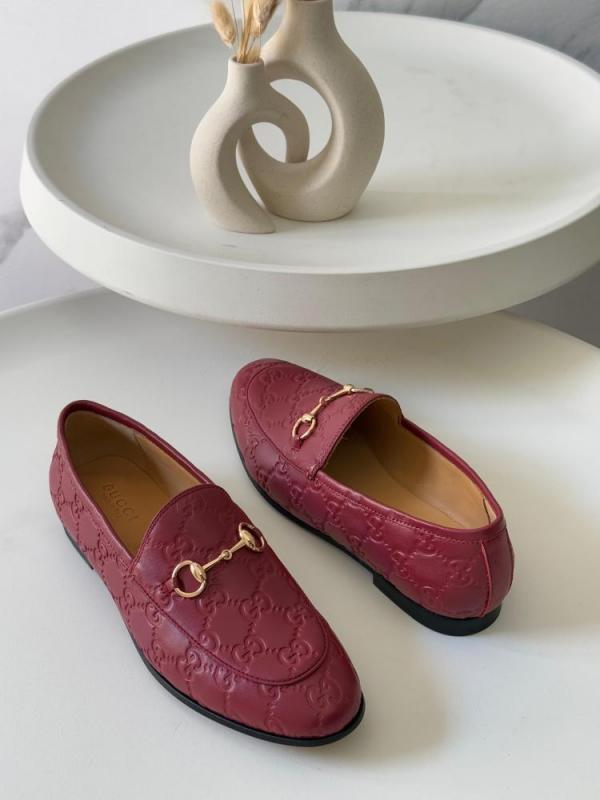 Gucci_Jordaan_Maroon_Loafers_Horsebit_Almond_Toe_For_Women_With_OG_Box_&_Carry_Bag