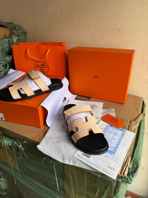 Hermes Chypre Supermaster Flat Sandal White For Men Premium Packing Stuff