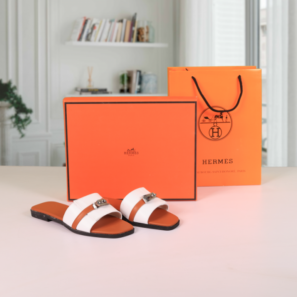 Hermes Paris Birkin Premium Flats With OG Box & Carry Bag (Brown White - 887)